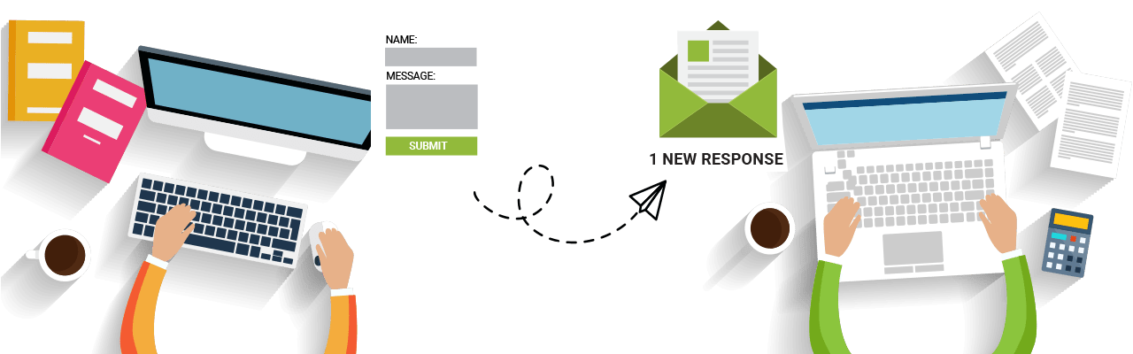 When your form is filled out and submitted you get a notification and they get confirmation. all data can be stored in a spreedsheet also.
